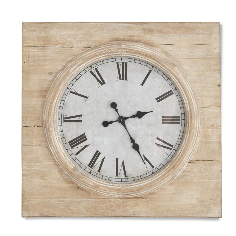 28 Inch Square Wooden Wall Clock w/Round Face