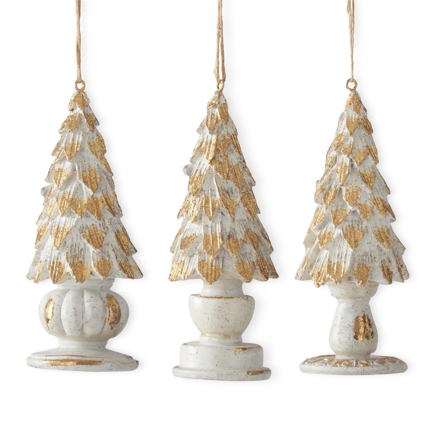 Assorted 4.5 Inch Whitewashed Tree w/Gold Leaves on Base Ornaments