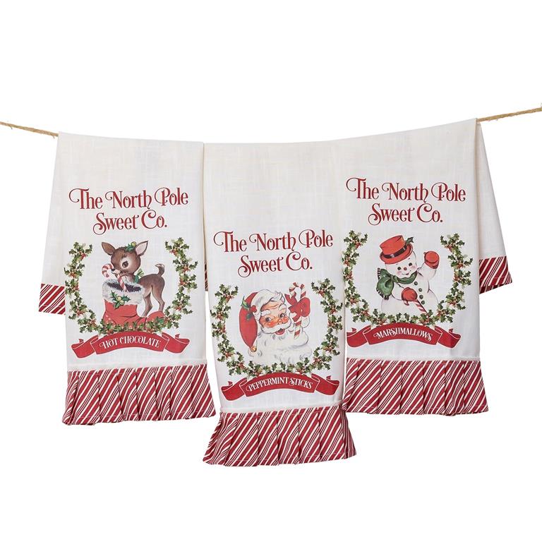 Tea Towels - Vintage Deer, Santa, And Snowman (Set of 3)