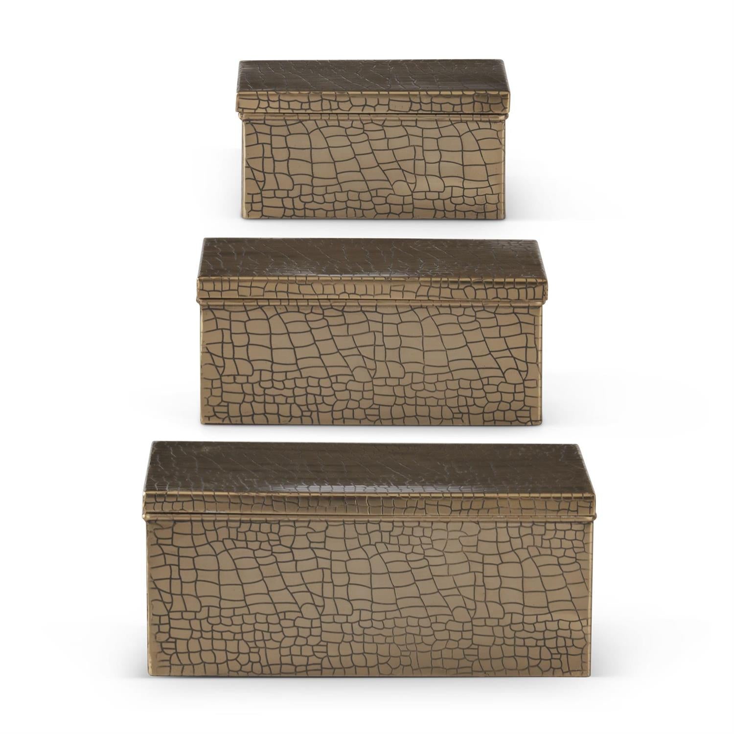 Gold Metal Alligator Skin Embossed Lidded Boxes
