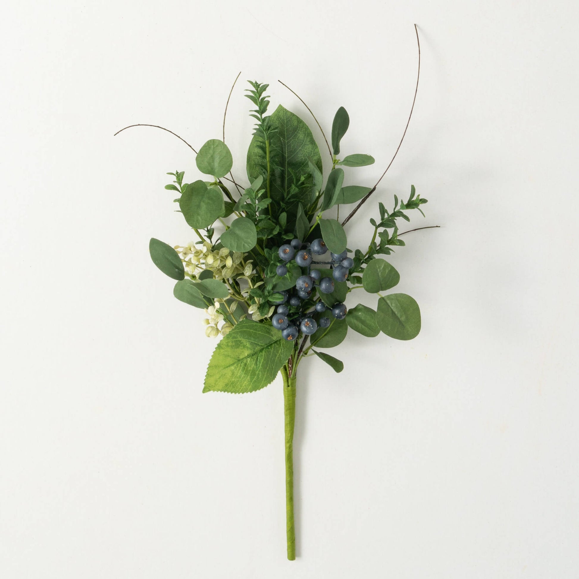 This lush leaf and berry pick is overflowering with mixed greenery and subtle berries. A perfect addition to your spring decor, this faux pick is versatile enough to leave on display all year round. It's a perfect addition to a shelf, mantel, or tabletop display.