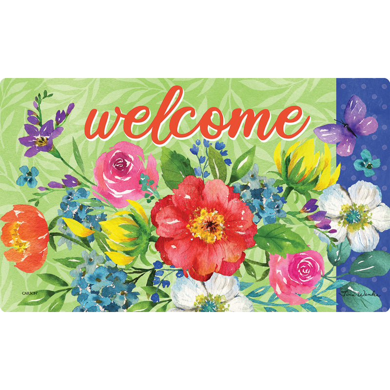 Our newly designed mats coordinate with our best selling flags to give your outdoor décor a complete, "put together" look! They are made so that no separate tray is needed - it is one piece. Complete with a thick, non-slip rubber backing and sleek low-profile design will slide under almost any door. The polyester top is permanently printed with fade and mildew resistant dyes.