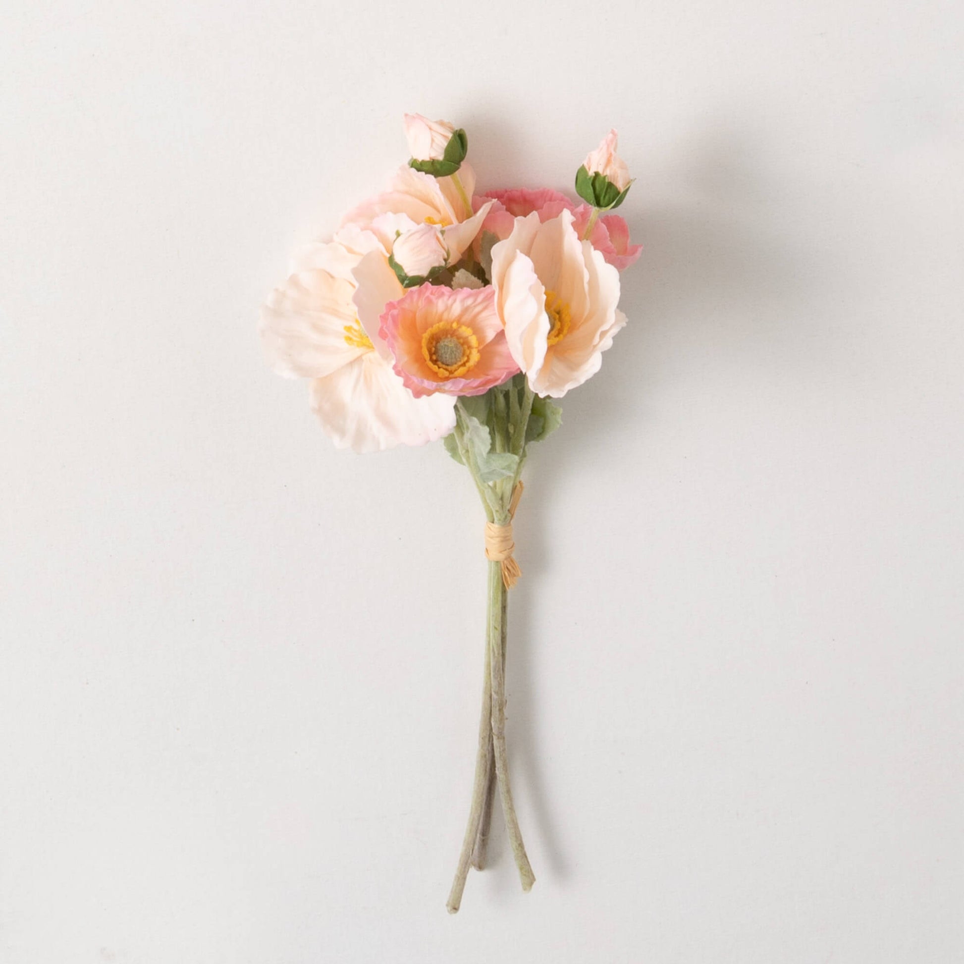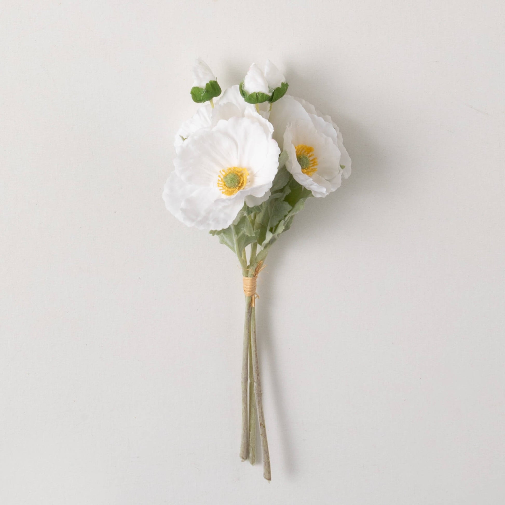 Add a lively pop of florals to your space with this Poppy Bush. Made with real-touch petals, this faux floral stem looks deceptively realistic and fresh-picked. The all-white poppy flowers have a delicate, airy appeal that works beautifully in any setting. Display it on its own in a vase for a simple statement piece, or incorporate it into a lush floral arrangement for added depth and texture. However you style it, this real-touch poppy bush brings effortless elegance to your decor.